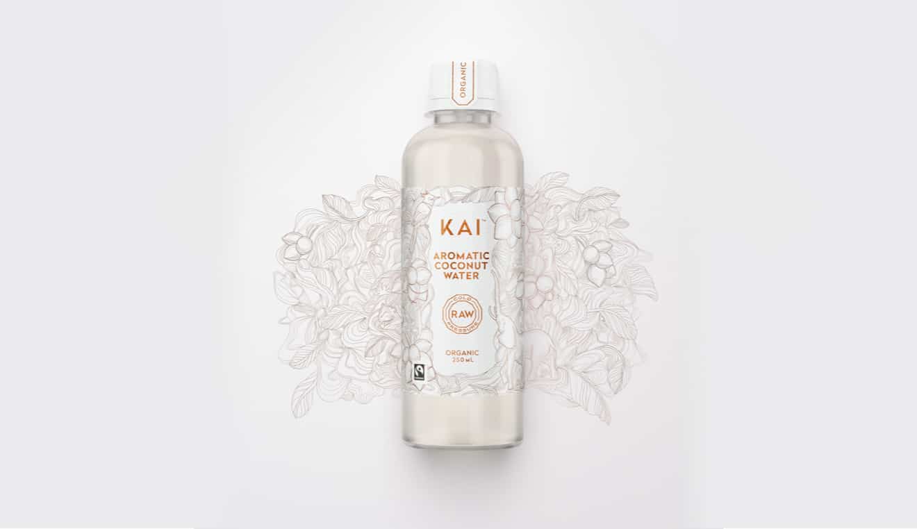 The brand Kai sets itself apart in the market of coconut water with an elegant, minimalistic package to enhance the premium quality of its product.
