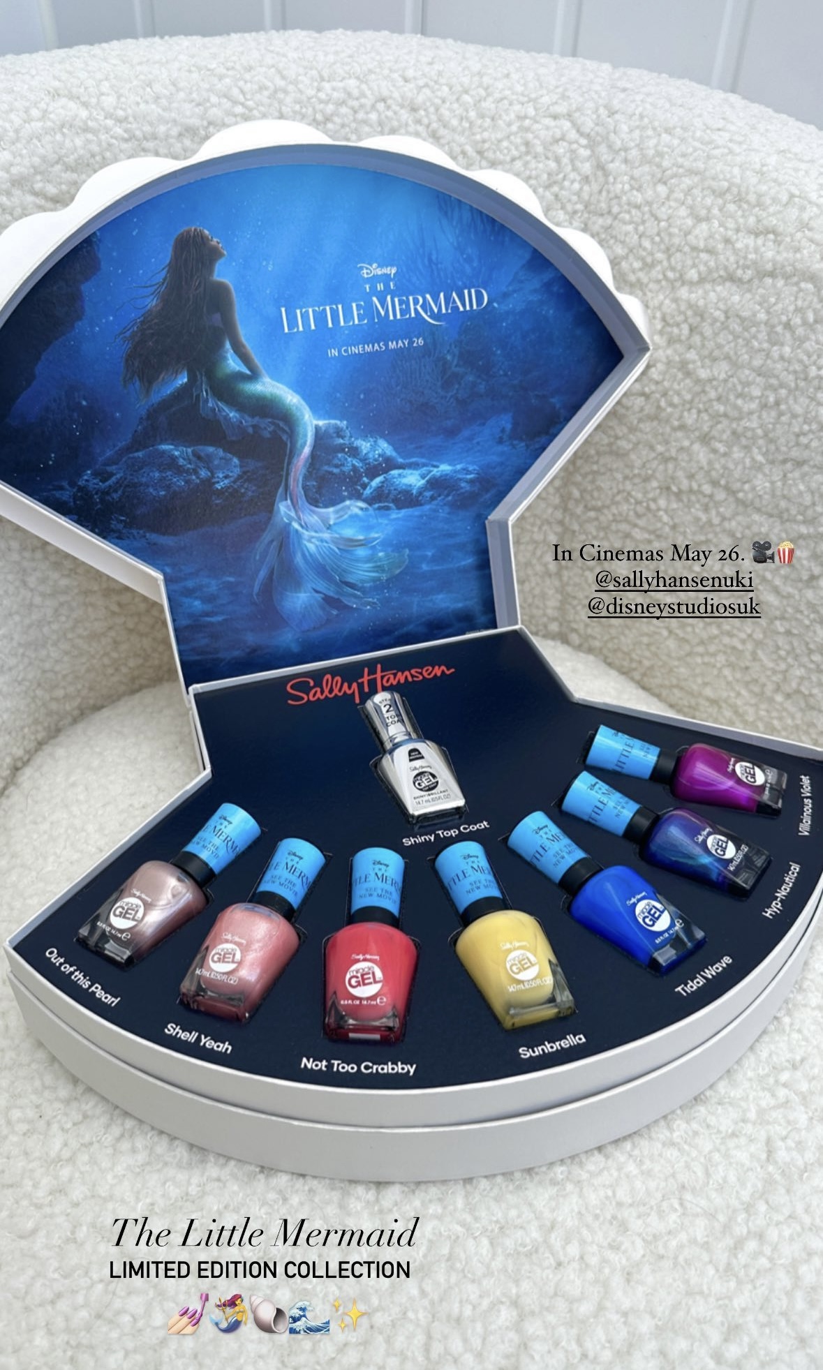 The PR package was a gorgeous beauty box filled with limited edition nail gels from popular beauty brand, Sally Hansen. The award-winning brand created the exclusive collection especially for The Little Mermaid movie, featuring shades named ‘Not Too Crabby’, ‘Shell Yeah’, and ‘Villainous Violet’.