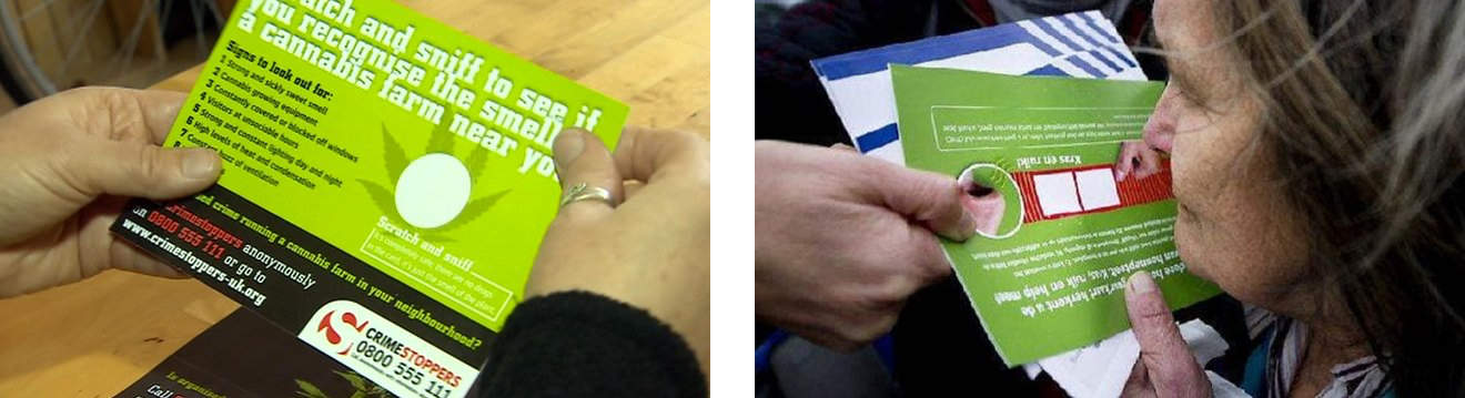 The increase in cannabis farms prompted Crime Stoppers to run a scent based campaign which encouraged users to report cannabis farms. The print adverts included a scratch and sniff patch which replicated the smell of cannabis helping people identify and report any findings to Crime Stoppers.